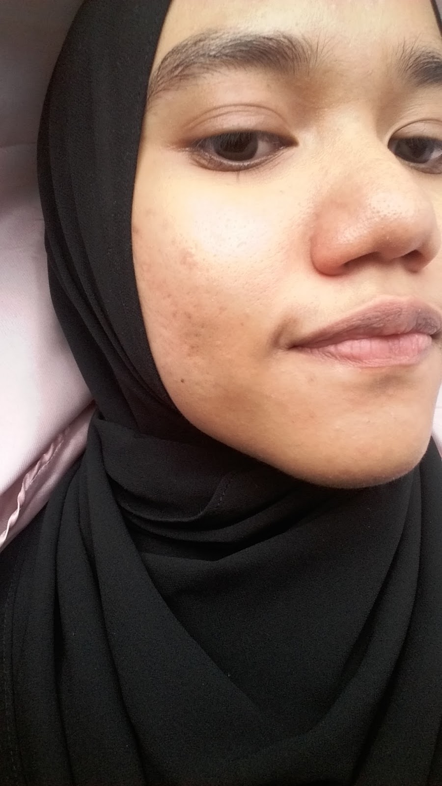 idk whether you could see it or not but, here it is. zoom in you could see my face got some red dots. I mean this was ok at first because my face was still considered as ok la, no big pores, no scars, and definitely no sign of 'rough' scars, or also known as the moon face.